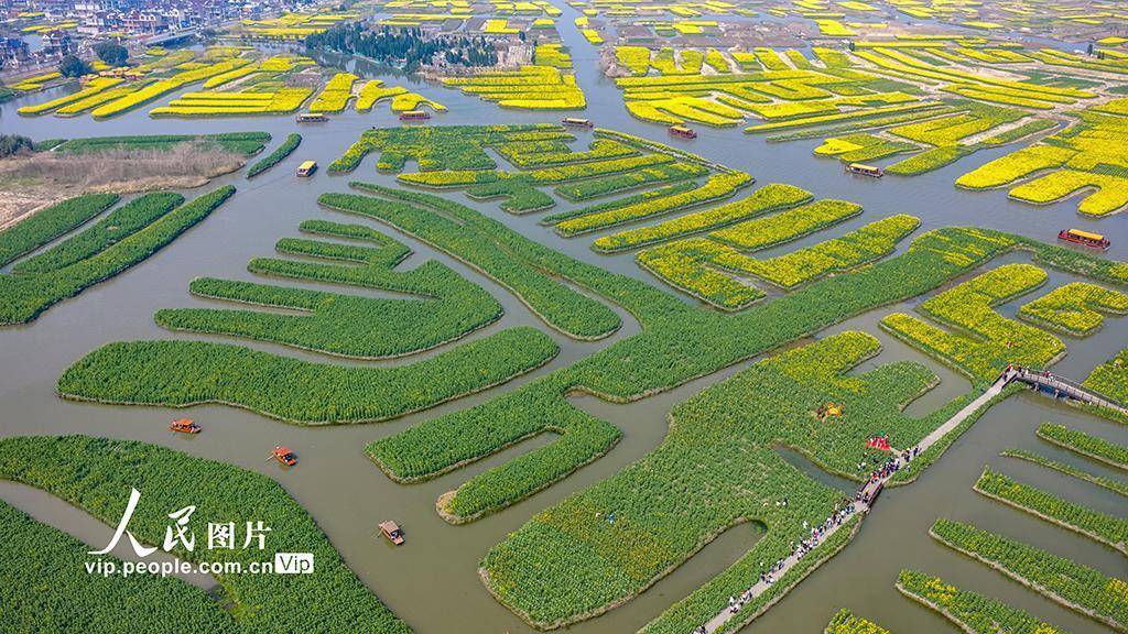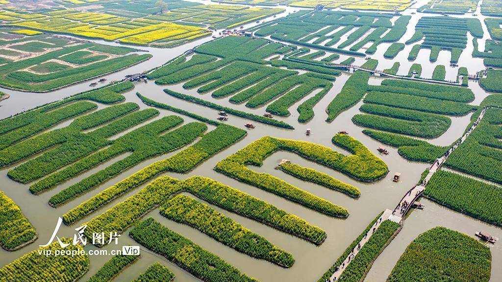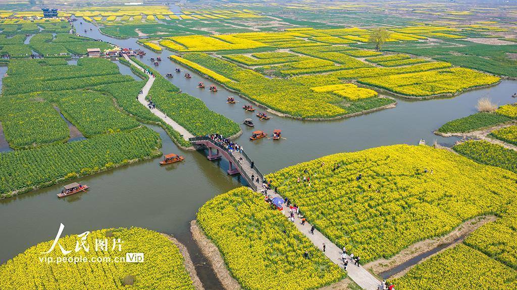 2026年3月22日开云体育,江苏兴化千垛景区油菜花次序通达,金色花海与纵横河谈交相衬映,组成一幅灵动的春日画卷,劝诱迢遥旅客前来踏青赏花。罗红摄(东谈主民图片网)