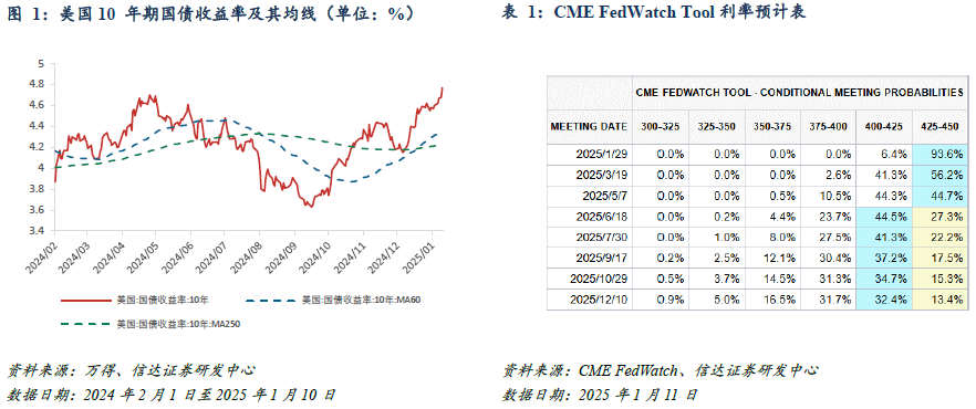 近期好意思债收益率受好意思联储降息预期影响。笔据CME FedWatch Tool统计,预期2025年5月降息概率为55.3%,上周斟酌值为57.3%,10年期好意思债收益率不时走强,60日均线上穿250日均线,因此在好意思债端模子给出看多红利的信号。