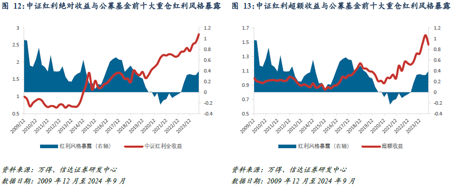 刻下偏股型公募基金红利立场暴露在2023年Q2转正,2023Q4暴露度为0.34,为近三年高点。2024Q2暴露度为0.32,2024Q3暴露度为0.39,仍然在红利立场上看守正向配置,且三季度的红利暴露度有所进步。