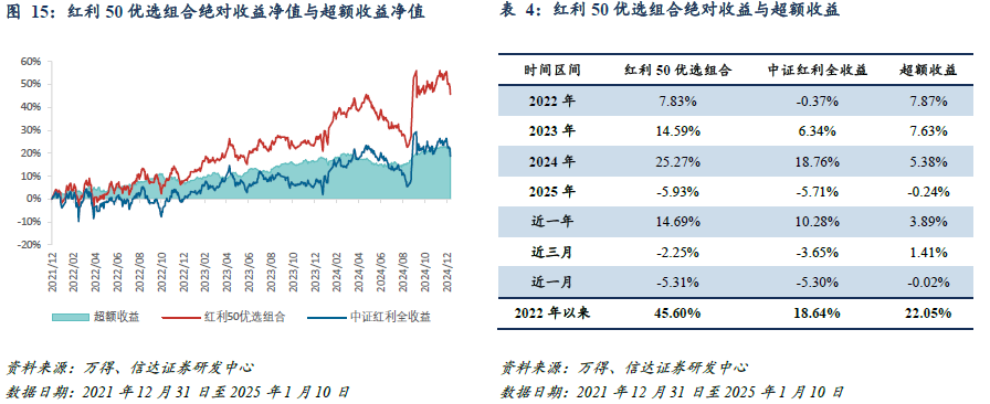 在前期阐发《分域选股系列之三:红利策略宝典:从教授逻辑到可落地的增强决策》中,咱们构建了红利50优选组合。组合在高股息收益的基础上,通常线性多因子模子进一步增强组合成本利得收益,并遴荐Barra立场因子拘谨组合立场暴露。更进一步参考三维红利逾额择时模子的不雅点,在保证大红利立场不漂移的前提下,细调红利立场暴露度,诓骗择时进一步增厚收益。