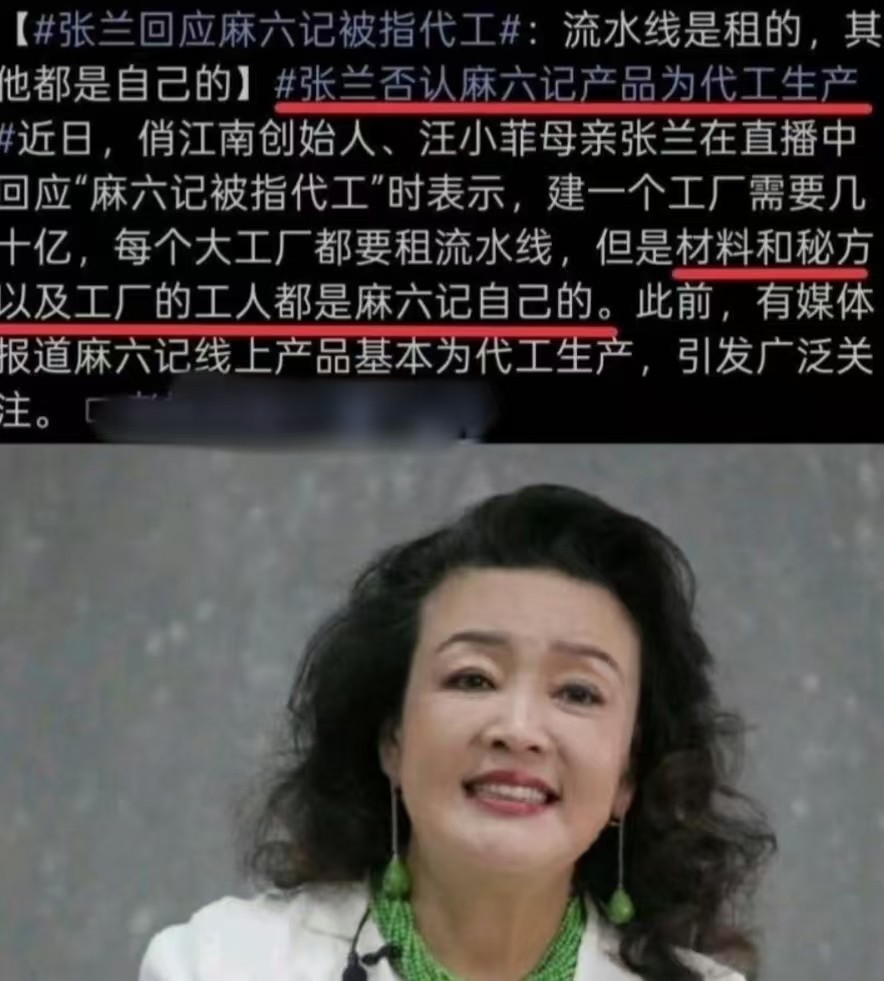 更环节的是,她曾明确否定麻六记居品是代工坐褥,宣称“原料、配方、工东谈主,齐是咱们我方的”!