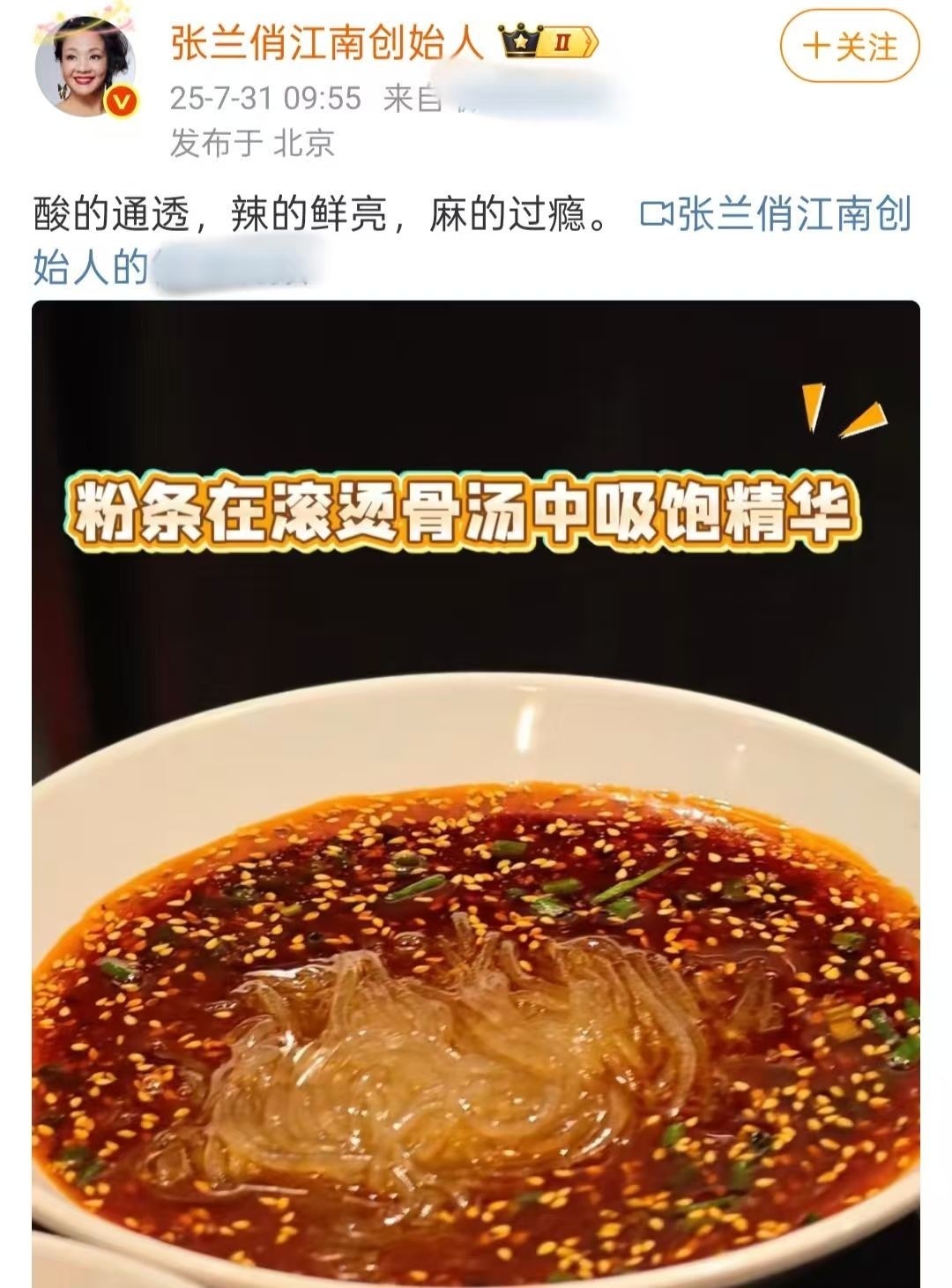 约略被网友的声浪逼得确凿顶不住了,张兰随后发布了第三条视频,这次终于轮到酸辣粉登场。