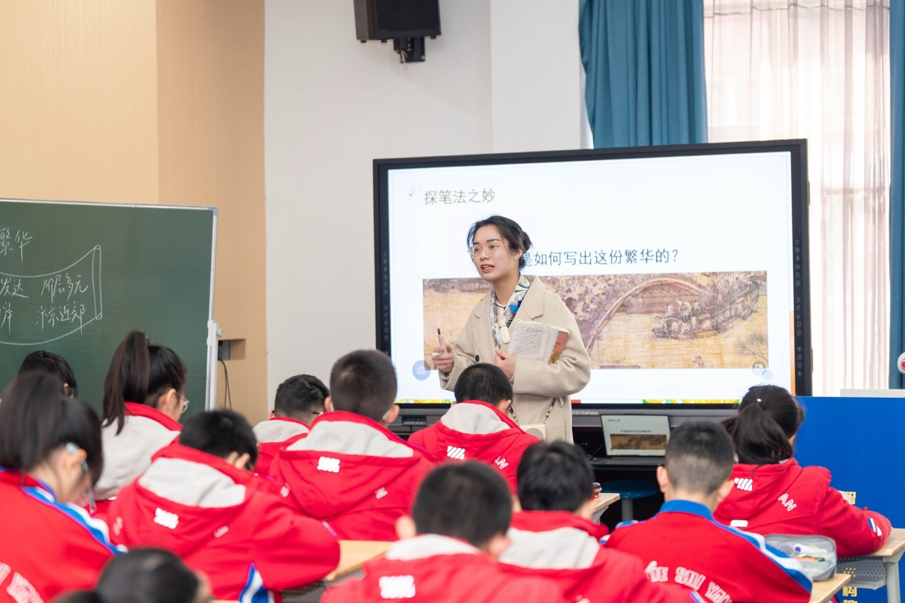 在立德实验中学语文老诚沈茜的《梦回富贵》课堂上,静态的古文和画卷被赋予了动态的人命。