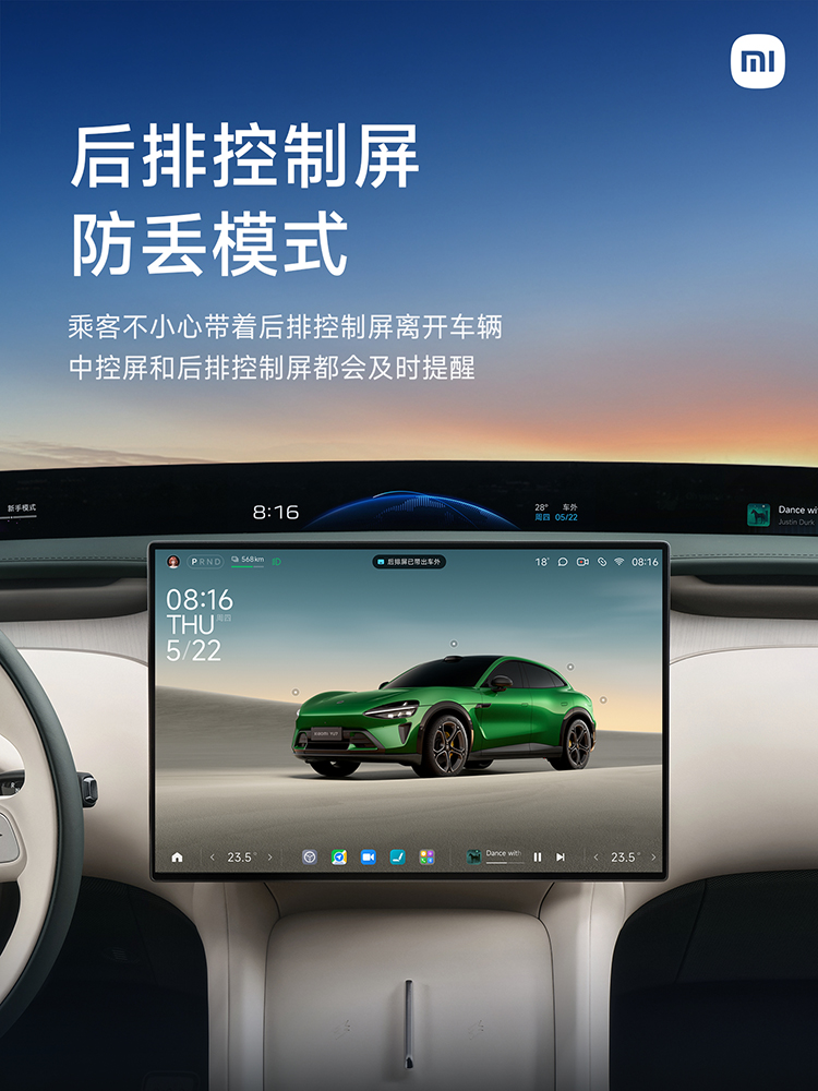 临了一个功能是后排屏幕防丢提醒,这个功能太进军了。那时发布会后就有不少东说念主顾虑我方的YU7如若开网约车,后排这个手机相同的放荡屏会被乘客“不戒备”抠走,毕竟SU7车标齐被抠过,手贱的东说念主没什么不敢的。这回好了,后排放荡屏被抠走离车时,中控屏和后排屏齐会发出提醒,实时见知给车主,减少车主的亏损。
