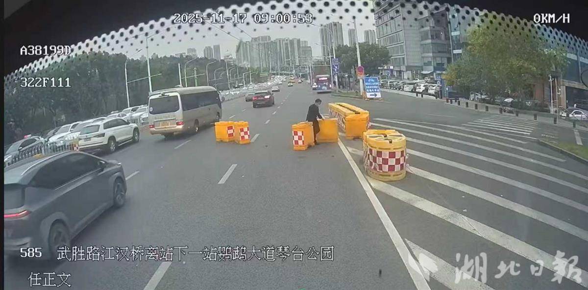 据悉,11月17日上昼9时,公交驾驶员任正文驾驶585路111号车,从武胜路泰和广场公交车站开赴,朝着万家湖科技园标的驶去。当车辆行驶至武胜路江汉桥下桥,行将到达古琴台站时,任正文一刹发现前列谈路情景相等。只见路障水马在大风的暴虐下七倒八歪,本来整皆陈设在谈路一侧的水马,此刻杯盘狼籍地占据了两个车谈,这些倒伏的水马不仅严重影响了车辆的平常通行,更给行车安全带来了极大的隐患。