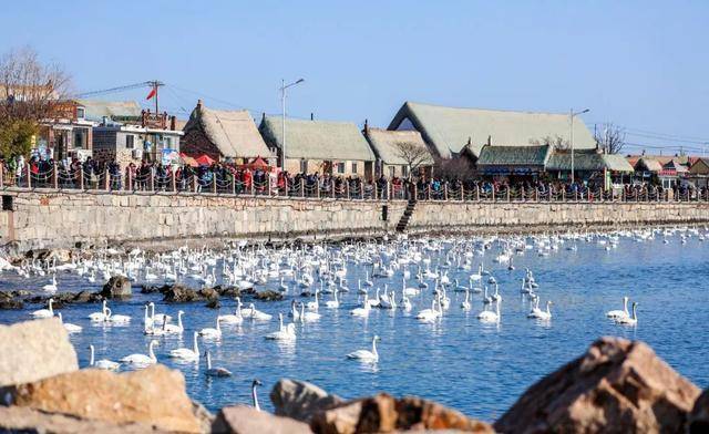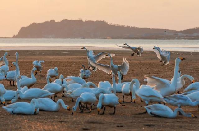 荣成是大天鹅南迁北移的温和驿站,亦然亚洲最大的大天鹅越冬栖息地之一。每年冬天,近万只精灵从西伯利亚沉奔赴,清白羽翼划破漫空,为这座海岸城市缀满灵动诗意,让冬日的海畔多了份挽救心动。