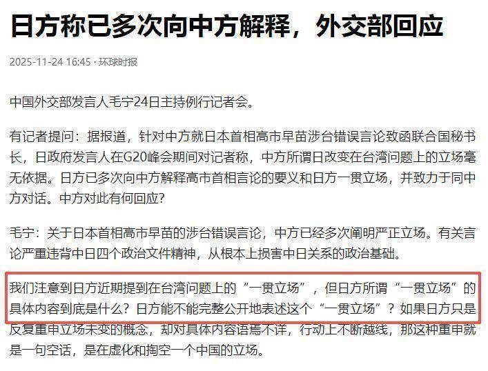 2025-11-24 16:45·环球时报日方称已屡次向中方解说,酬酢部回答